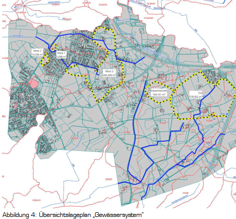 Entwässerungskonzept für ein Entwicklungsgebiet (Wohnen/Gewerbe) (nachher)