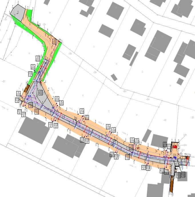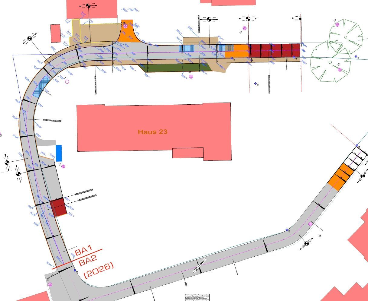 Beschreibung: Im Endausbau wird eine 145 m lange und ca. 10 m breite Erschließungsstraße hergestellt. Die Fahrbahn erhält einen durchgehenden Asphaltoberbau, der Gehweg wird in Betonpflaster ausgeführt – robust, wartungsfreundlich......